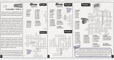 «Discover Spain,» is packed with 100 themed fill-in puzzles, fascinating cultural facts, and a gentle learning curve perfect for both beginners and experts.